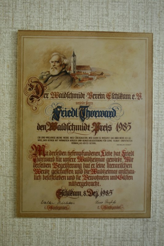 Die Ausstellung wurde 1985 eingerichtet. In Bänden, Gegenständen und Worten (auch in seinen eigenen) wird Waldschmidt, ein großer Sohn der Waldheimat vorgestellt, einzelne Kapitel aus seinem Leben sehr detailliert herausgearbeitet und mit vielen "Zeugnissen" aus der damaligen Zeit belegt.