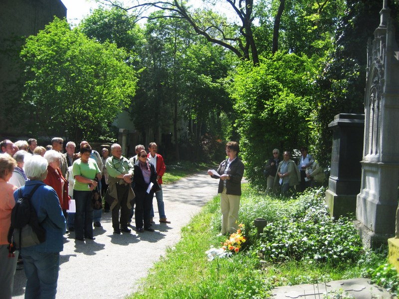 Waldschmidt-Freunde am Grab von Waldschmidt am Südfriedhof in München