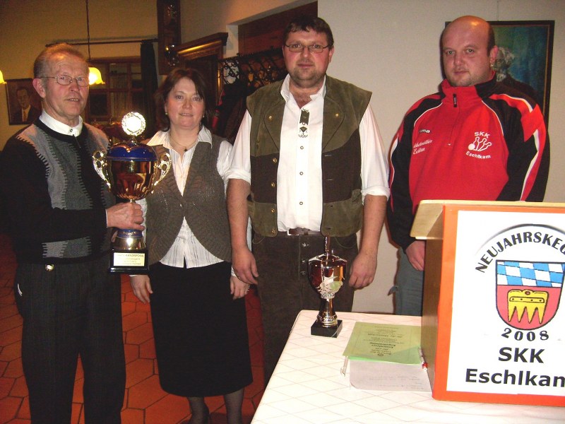 2. Vorsitzender Xaver Penzkofer nimmt den Siegerpokal vom Neujahrskegeln 2008 in Empfang,